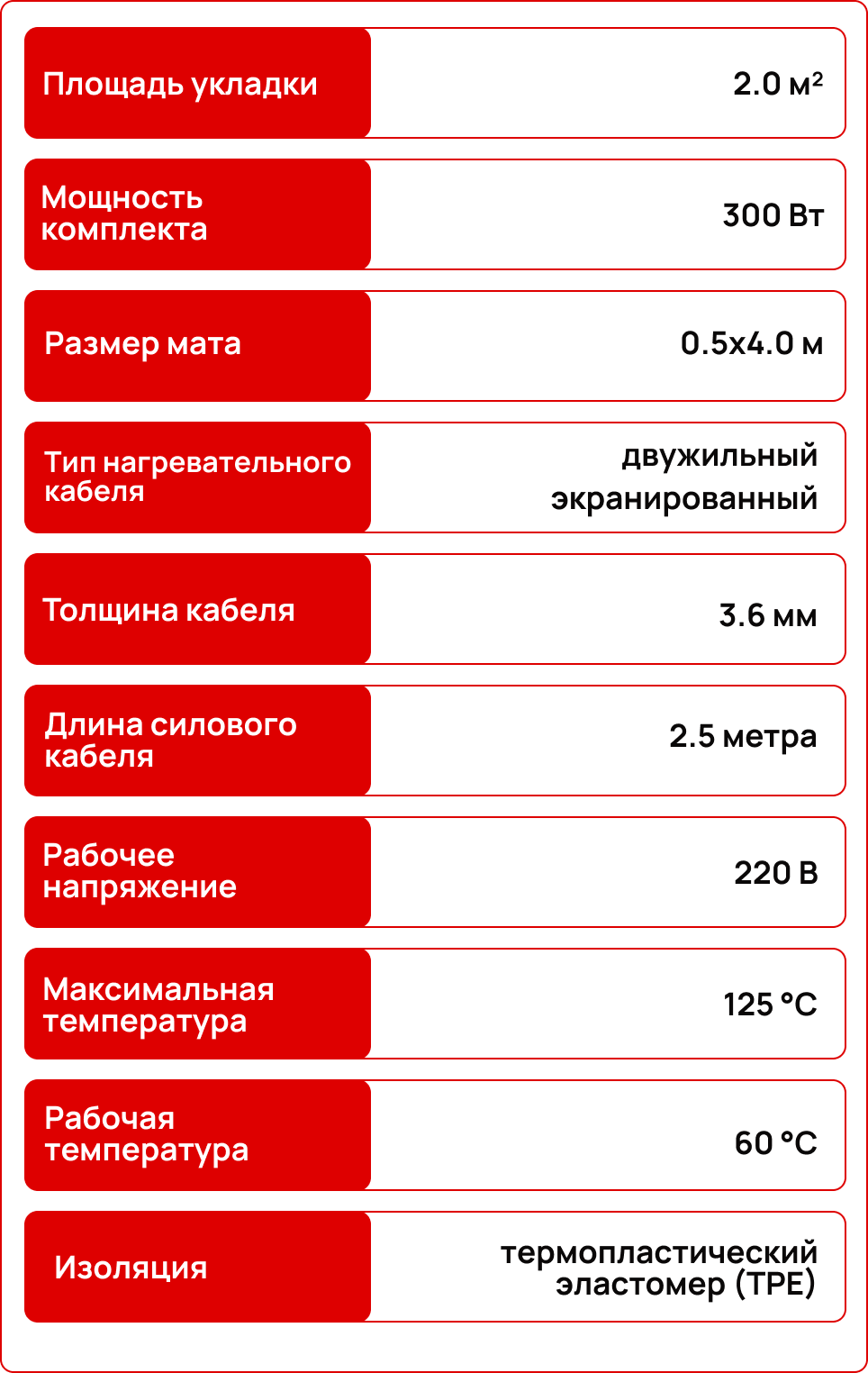 0,5 м x 3,0 м — удобна для локального подогрева зон повышенного комфорта.